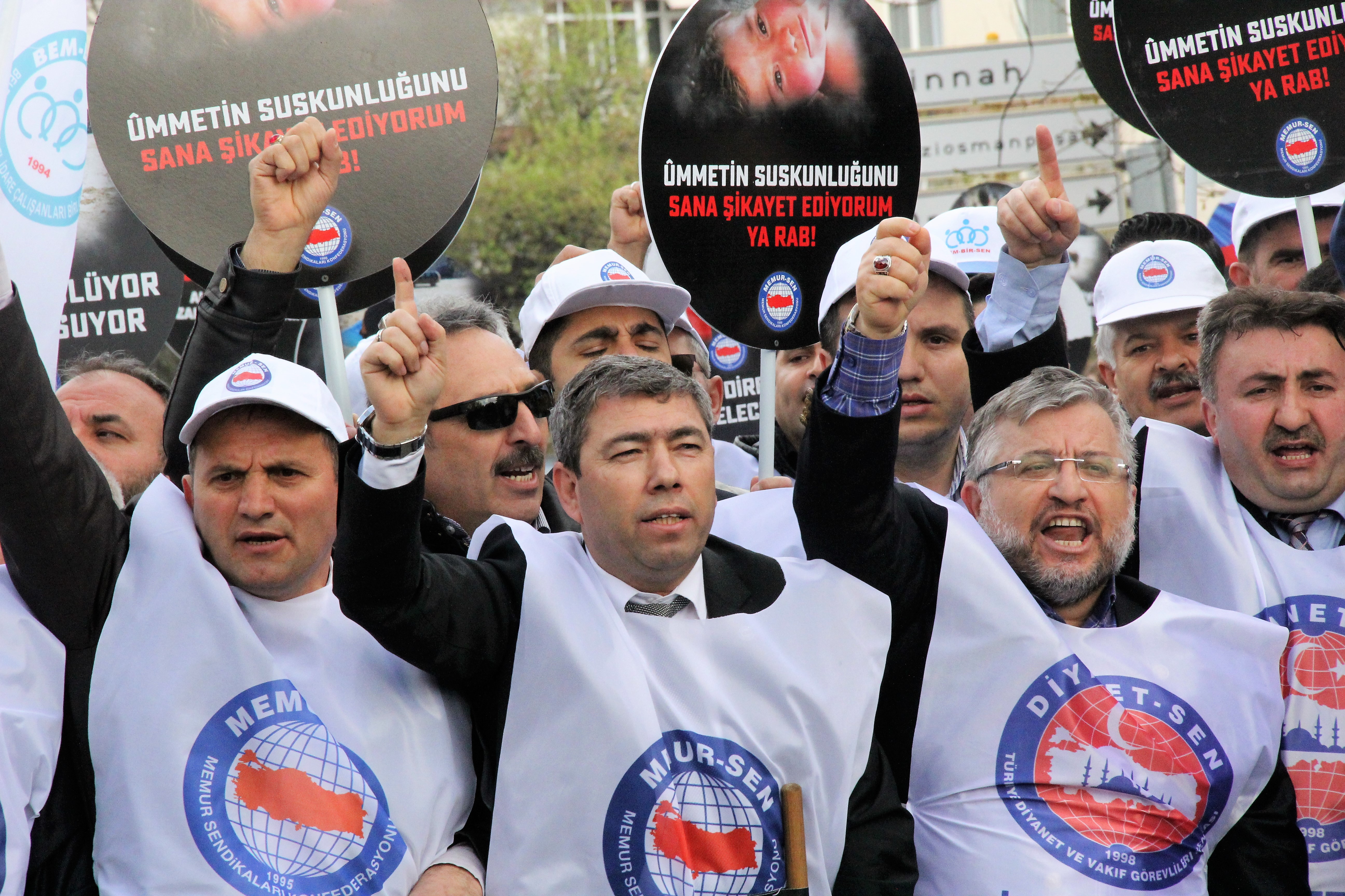 Memur-Sen, Esad Rejiminin İdlib’de gerçekleştirdiği kimyasal saldırıları İran ve Rusya Büyükelçiliği önünde kınadı. Yoğun katılımın olduğu programda, BAAS Rejimi, Rusya, İran ve Emperyalizm aleyhinde sloganlar atıldı. İlk olarak İran Büyükelçiliği önünde gıyabi cenaze namazı kılan Memur-Sen üyeleri, daha sonra İdlib katliamını temsilen tabutlarla Rusya Büyükelçiliği önüne yürüdü. Tabutlar Rusya Büyükelçiliği önüne bırakılarak tepki gösterildi. Rusya Büyükelçiliği önünde bir basın açıklaması yapan Memur-Sen Genel Başkanı Ali Yalçın, “Kahrolsun vahşet koalisyonu. Yılmayacağız, pes etmeyeceğiz. İnsanlık, vahşete karşı birleşip hem Rusya’yı hem ABD'yi ve İran’ı hem de Esad’i veto etmelidir" dedi.