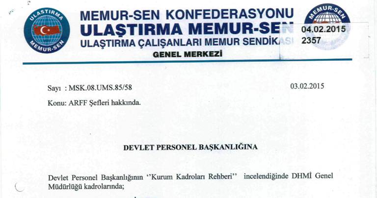 Devlet Hava Meydanları İşletmesi Genel Müdürlüğü ( DHMİ) bünyesinde çalışan ARFF Şeflerinin sıkıntıları Devlet Personel Başkanlığına yazılı olarak iletilmiş, çözüme kavuşturulması için çalışma başlatılması ve sendikamıza bilgi verilmesi talep edilmiştir.
