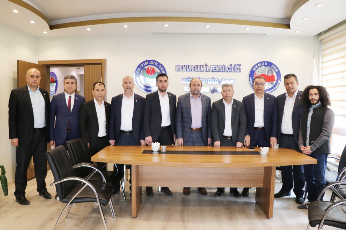 Heyet, daha sonra Memur-Sen Mersin İl Temsilcisi Abdullah Çelik ve Yönetim Kurulu üyelerini de Makamında ziyaret ederek istişarelerde bulundu ve çalışmalar hakkında bilgiler verdiler. Heyet daha sonra, Büro Memur-Sen Mersin Şube Başkanı Ahmet Kızıl’ı da ziyaret ederek görüş alışverişinde bulundu.