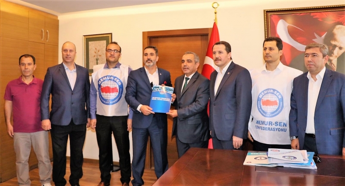 Genel Başkan Can Cankesen, Genel Başkan Yardımcıları İbrahim Uslu, Kenan Çalışkan ve Tümer Gümüşle birlikte, 2018-2019 yıllarına ilişkin ulaştırma hizmet kolu çalışanlarının taleplerini içeren dosyayı Devlet Personel Başkanlığı’na teslim ettiler.