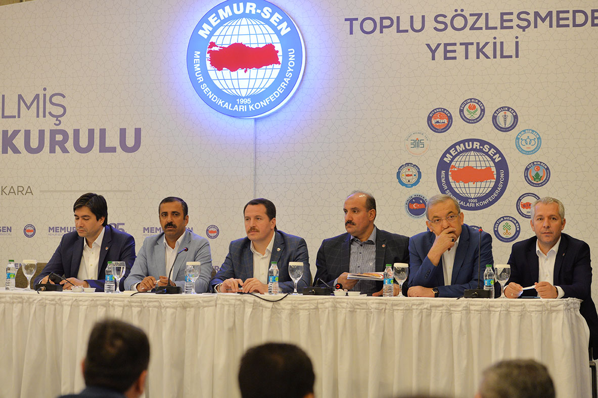 Memur-Sen 25. Genişletilmiş Başkanlar Kurulu Ankara'da gerçekleştirildi. Ağustos ayında yapılacak olan 4.Dönem Toplu Sözleşme görüşmeleri hakkında istişarelerin yapıldığı son toplantıda, Pazartesi günü Devlet Personel Başkanlığı'na teslim edilecek olan tekliflere son şekli verildi. Toplantıda konuşan Memur-Sen Genel Başkanı Ali Yalçın, 4. Dönem Toplu Sözleşme masasına reel tekliflerle oturacaklarını ifade etti. Yalçın, Toplu sözleşme stratejileri hakkında da açıklamalarda bulundu. Toplu sözleşme görüşmelerinde 3 alternatifli teklif sunacaklarını ifade eden Yalçın, 5 milyon 100 bin çalışanın sorumluluğuyla masaya oturacaklarının altını çizdi.